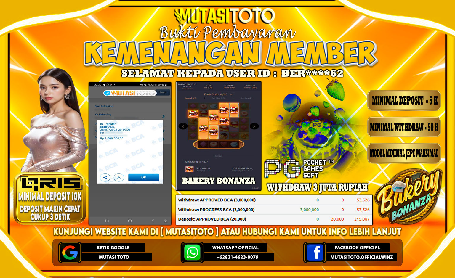 BUKTI KEMENANGAN MEMBER BERMAIN DI BAKERY BONANZA
