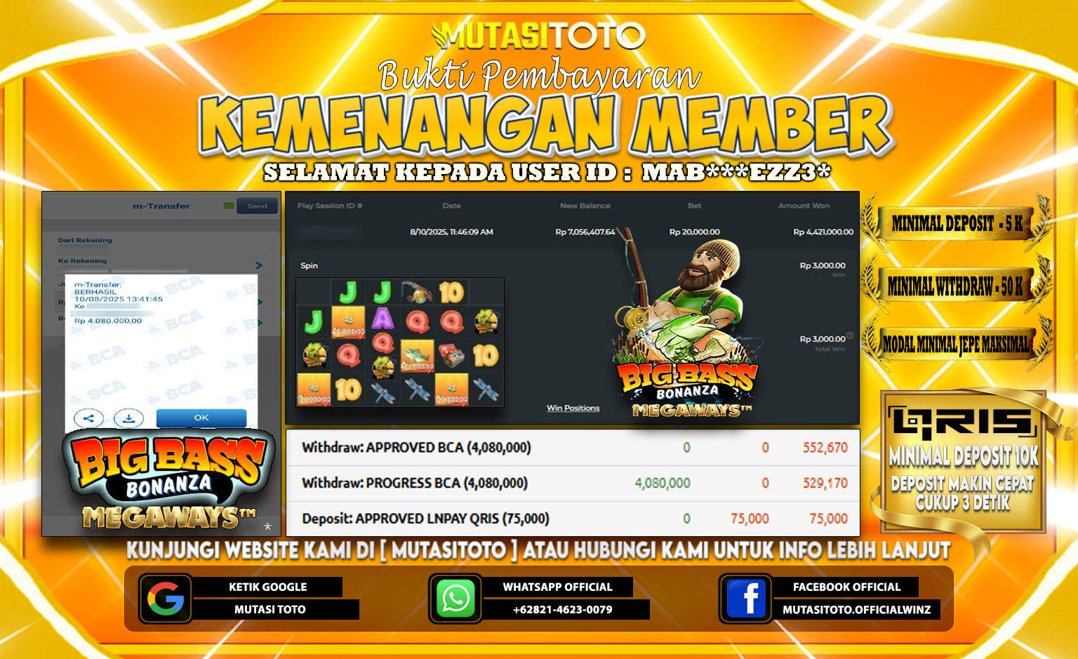 KEMENANGAN MEMBER BERMAIN DI BIG BASS BONANZA MEGAWAYS