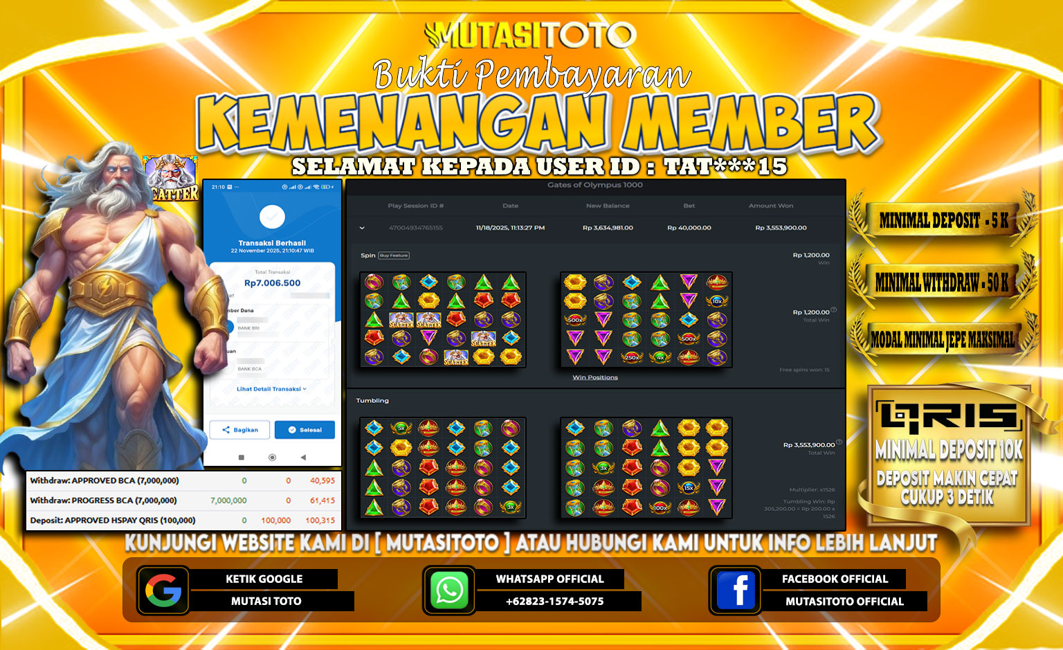 Selamat kepada member kami atas kemenangan besar nya bersama “MutasiToto”
