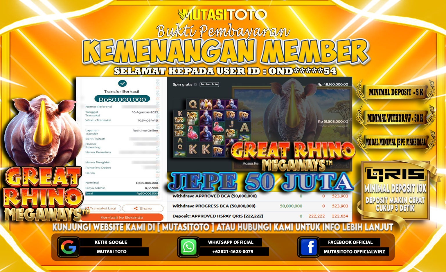 Selamat kepada member kami atas kemenangan besar nya bersama “MutasiToto”