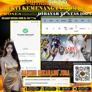 Selamat kepada member kami atas kemenangan besar nya bersama “MutasiToto”