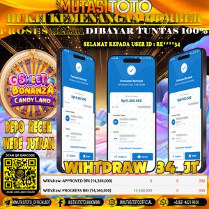 Selamat kepada member kami atas kemenangan besar nya bersama “MutasiToto”