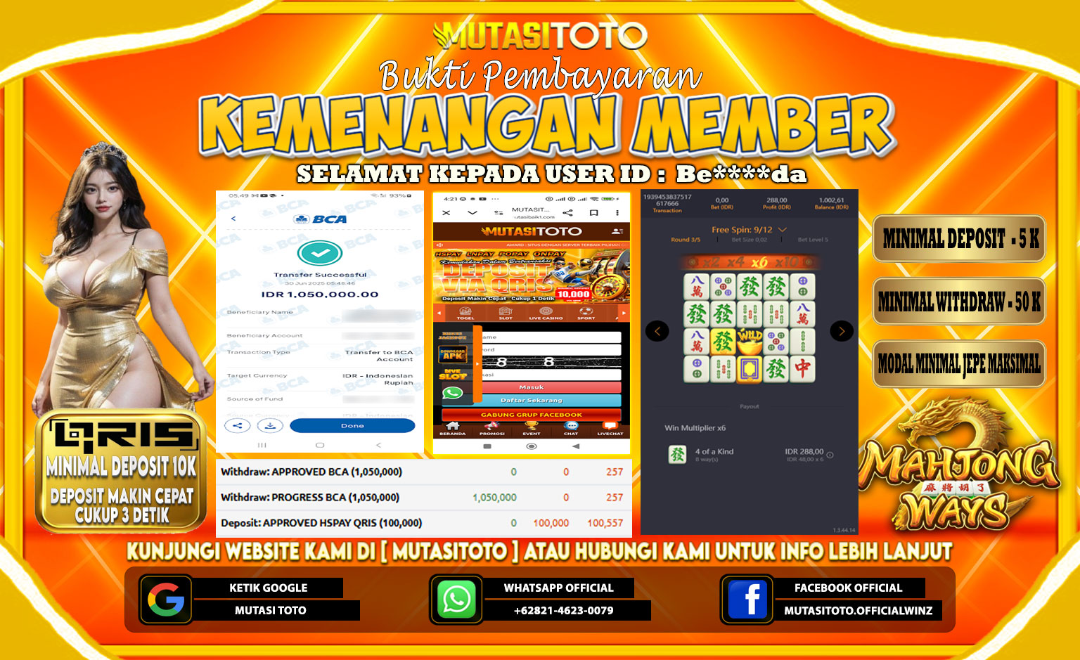 selamat kepada member kami atas kemenangan besar nya bersama “MutasiToto”