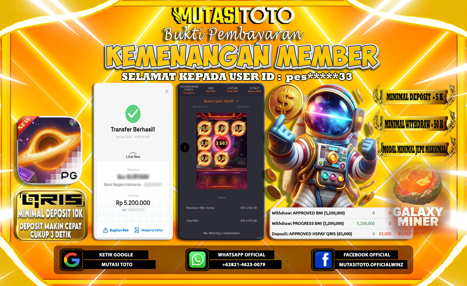 Selamat kepada member kami atas kemenangan besar nya bersama “MutasiToto”