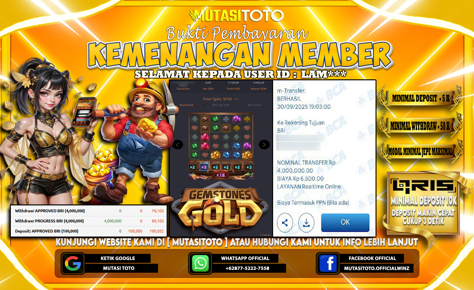 Selamat kepada member kami atas kemenangan besar nya bersama “MutasiToto”