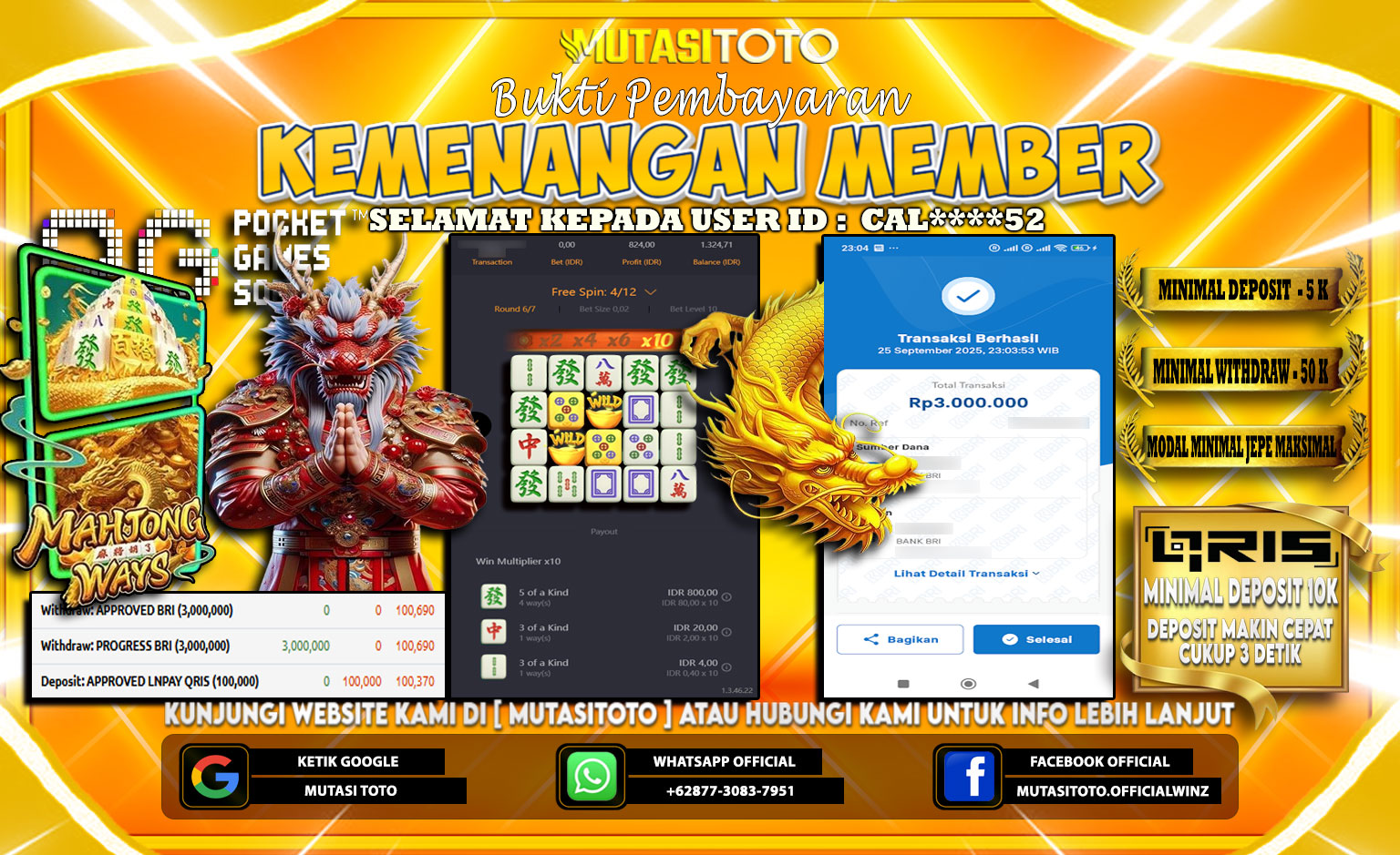 KEMENANGAN : Rp. 3,000,000,-