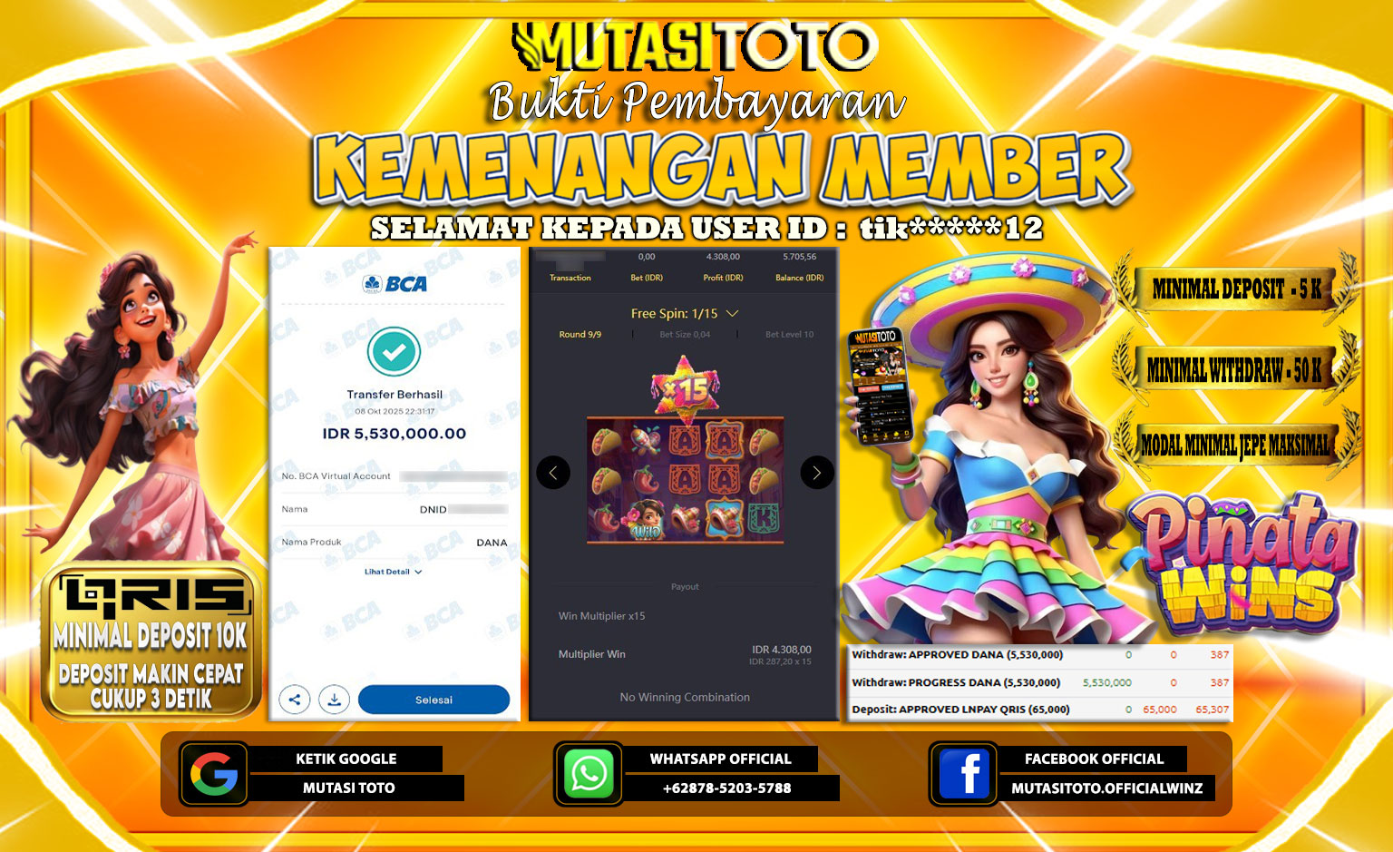 Selamat kepada member kami atas kemenangan besar nya bersama “MutasiToto”