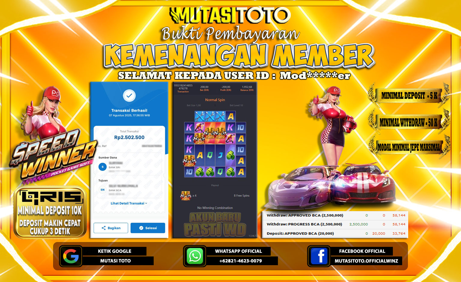 Selamat kepada member kami atas kemenangan besar nya bersama “MutasiToto”