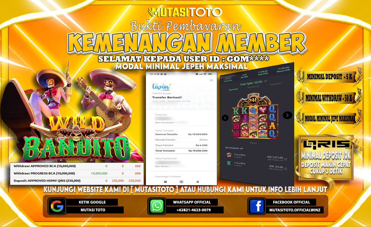 Selamat kepada member kami atas kemenangan besar nya bersama “MutasiToto”