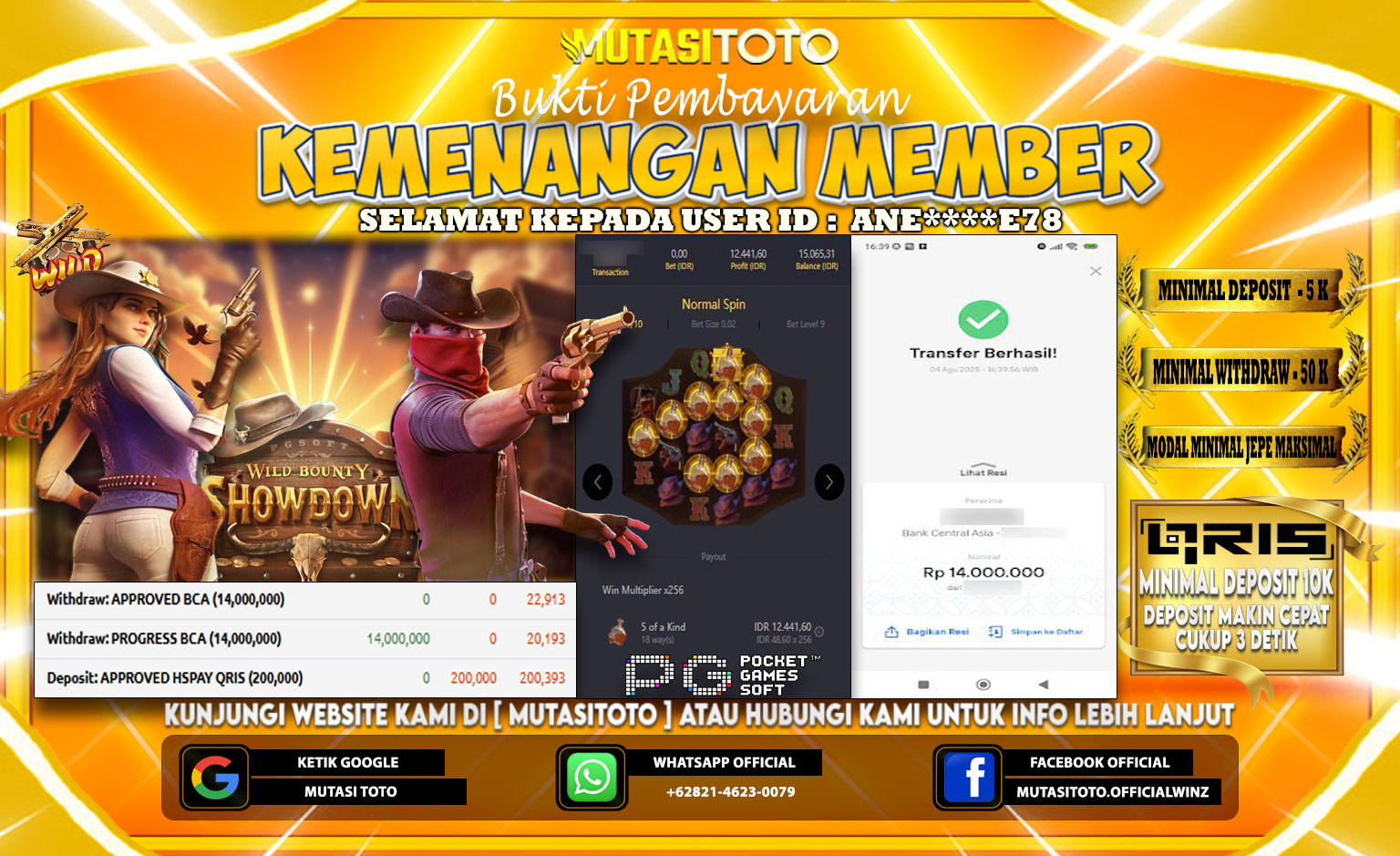 Selamat kepada member kami atas kemenangan besar nya bersama “MutasiToto”