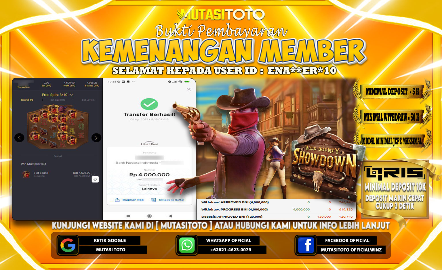 Selamat kepada member kami atas kemenangan besar nya bersama “MutasiToto”