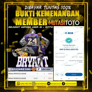 Setelah mengisi formulir withdraw dengan kurung waktu hanya 5 – 10 menit pihak MUTASITOTO sudah melakukan transfer kepada pemilik User id dan dana sudah dapat di cairkan oleh pemenang. Bukti pembayaran yang kami berikan merupakan bukti pembayaran yang SAH / VALID yang langung di dapatkan melaui tanda transfer transaksi dari Bank yang dituju.