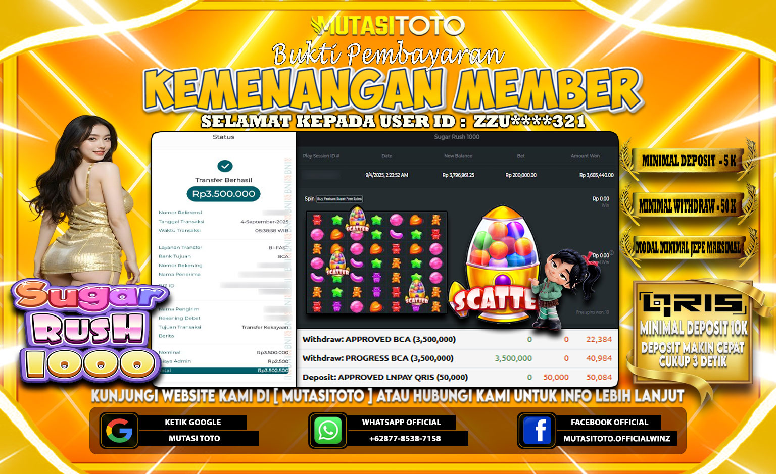 Selamat kepada member kami atas kemenangan besar nya bersama “MutasiToto”