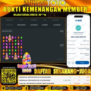 Setelah mengisi formulir withdraw dengan kurung waktu hanya 5 – 10 menit pihak MUTASITOTO sudah melakukan transfer kepada pemilik User id dan dana sudah dapat di cairkan oleh pemenang. Bukti pembayaran yang kami berikan merupakan bukti pembayaran yang SAH / VALID yang langung di dapatkan melaui tanda transfer transaksi dari Bank yang dituju.