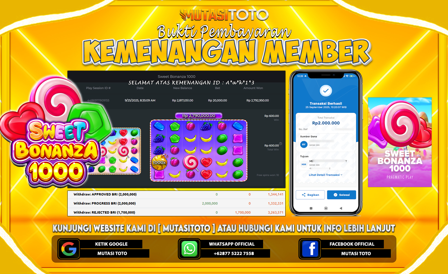 Selamat kepada member kami atas kemenangan besar nya bersama “MutasiToto”