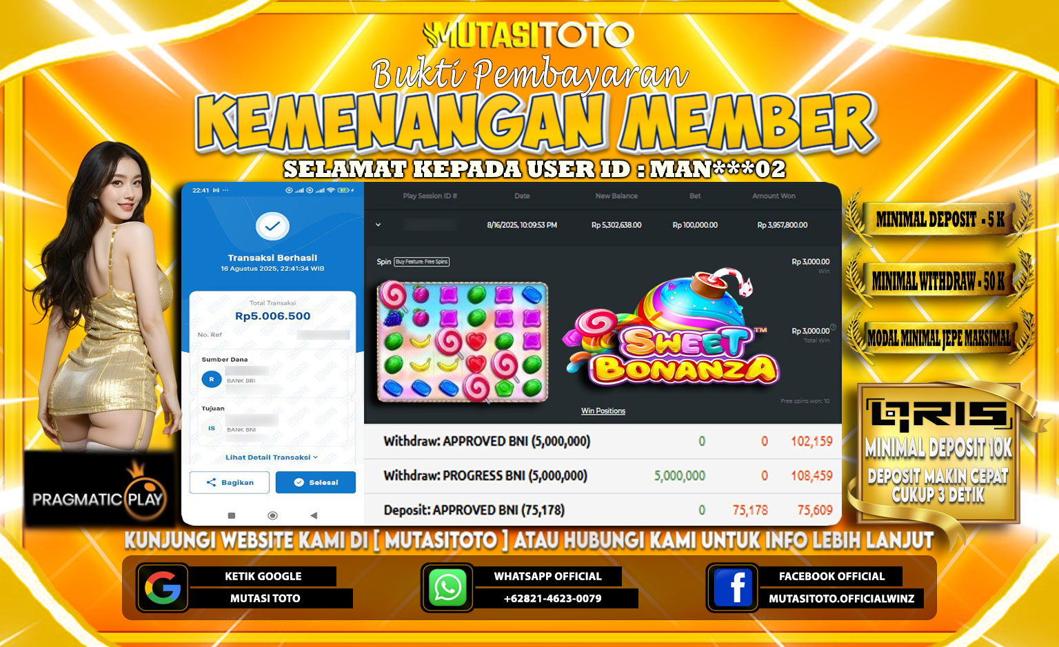 Selamat kepada member kami atas kemenangan besar nya bersama “MutasiToto”