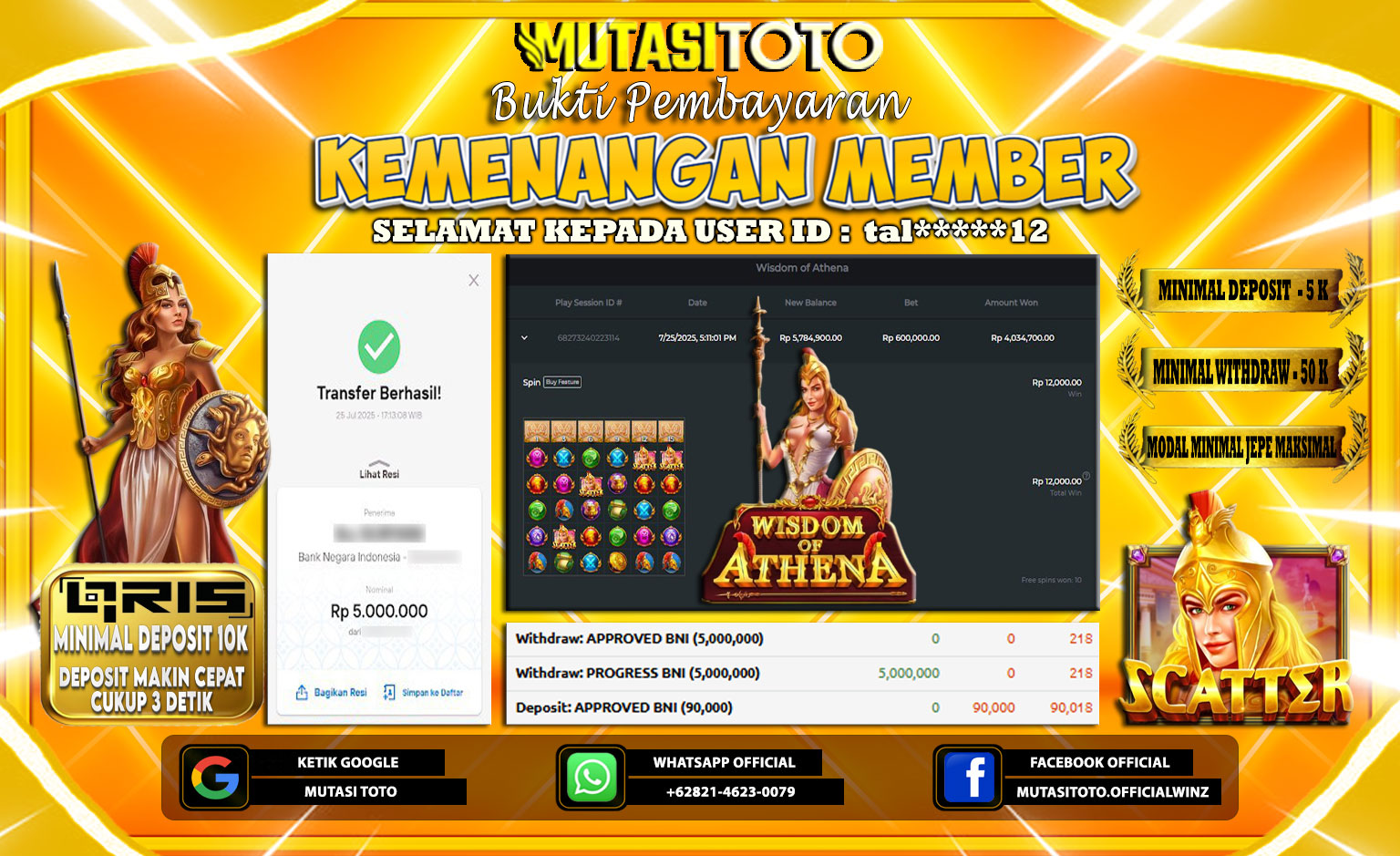 KEMENANGAN MEMBER BERMAIN DI WISDOM OF ATHENA