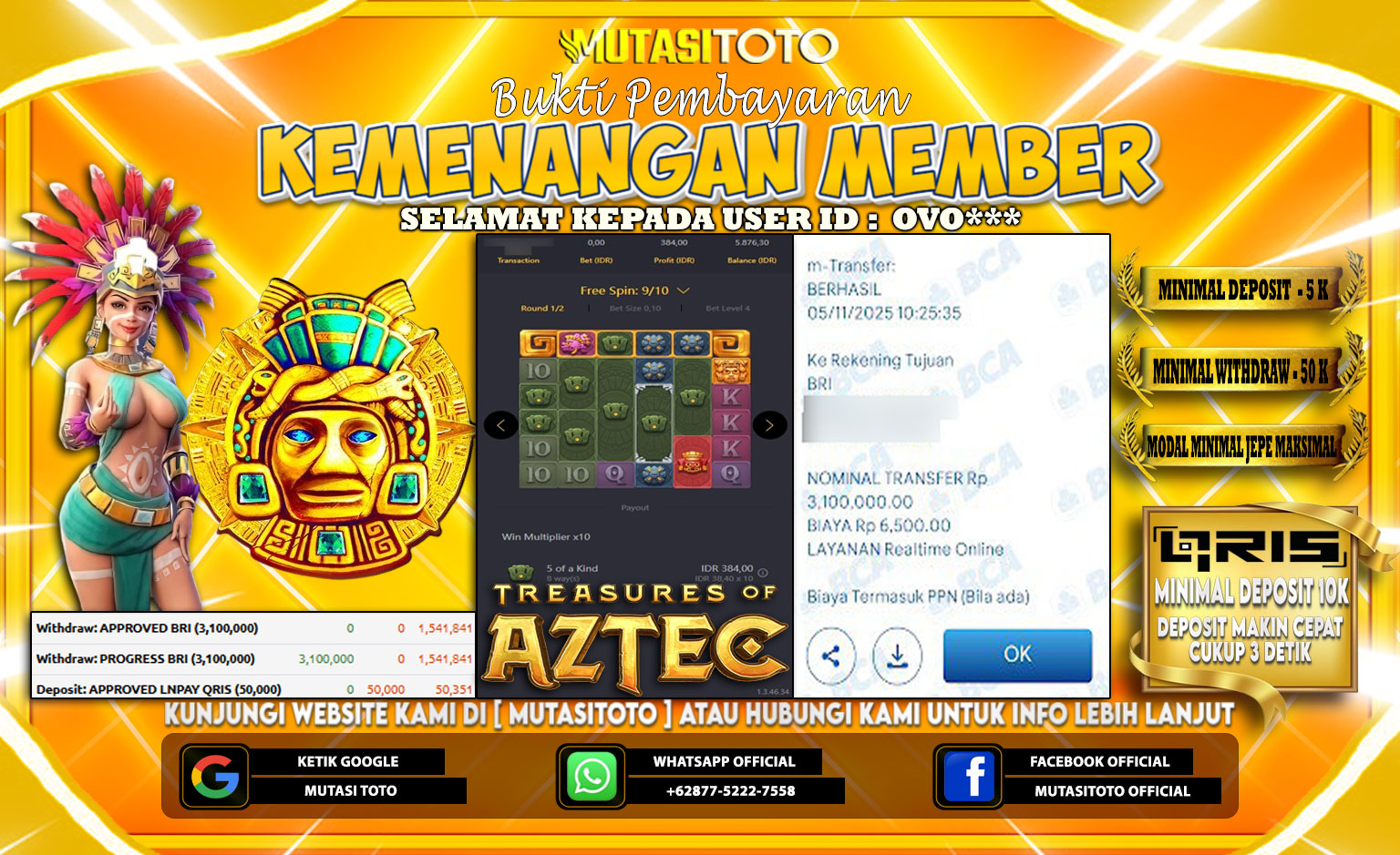 Selamat kepada member kami atas kemenangan besar nya bersama “MutasiToto”