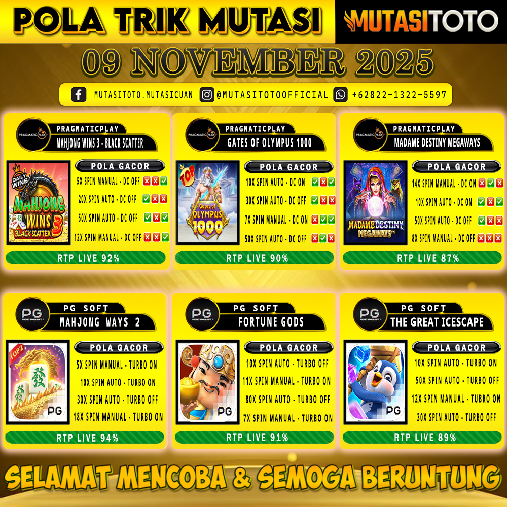 POLA GACOR TERUPDATE 09 NOVEMBER 2025 – MUTASITOTO