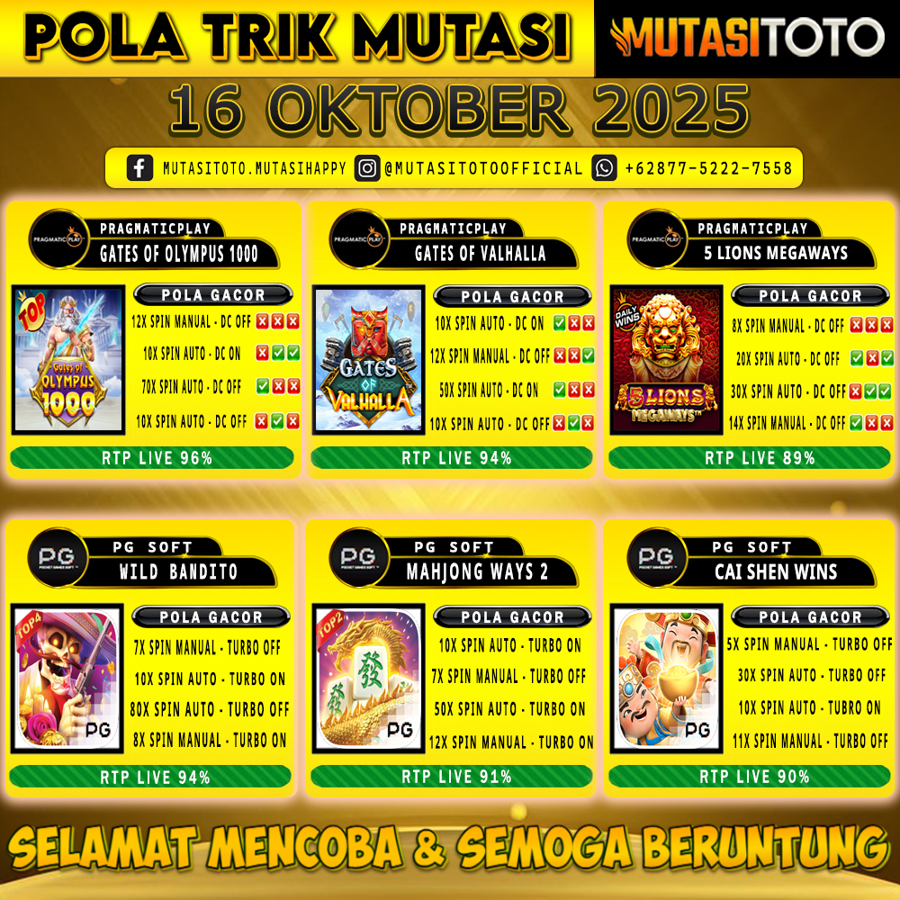 POLA GACOR TERUPDATE 16 OKTOBER 2025 – MUTASITOTO
