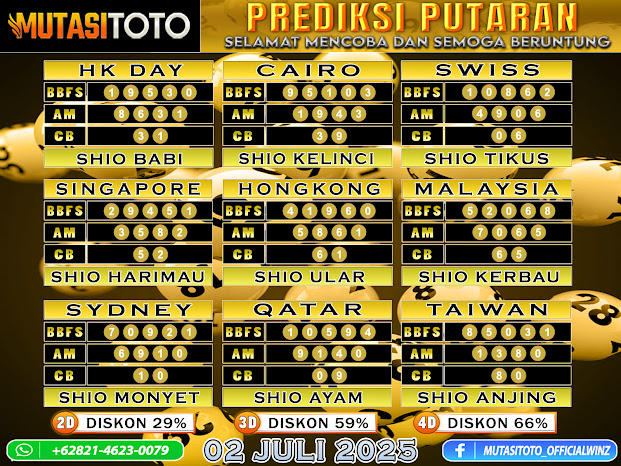PREDIKSI ANGKA TOGEL “MutasiToto” 02 JULY 2025