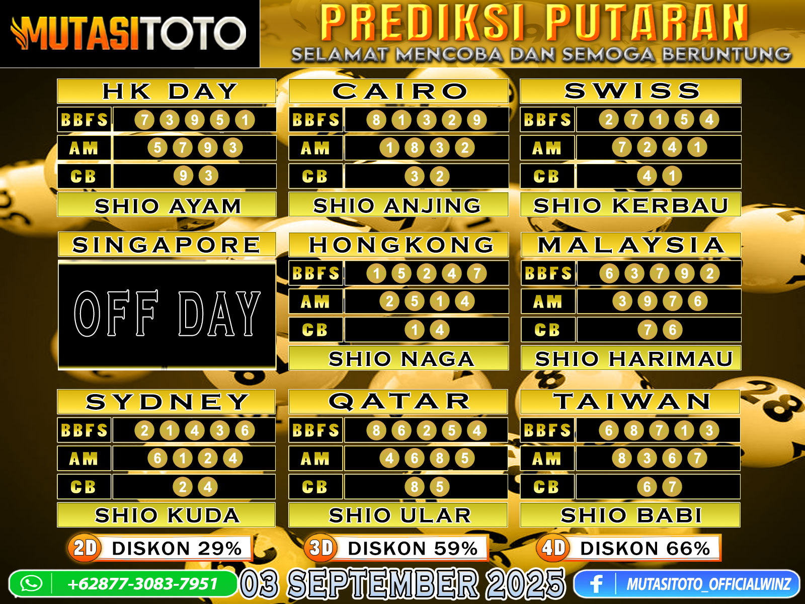 PREDIKSI ANGKA TOGEL “MutasiToto” 03 OKTOBER 2025