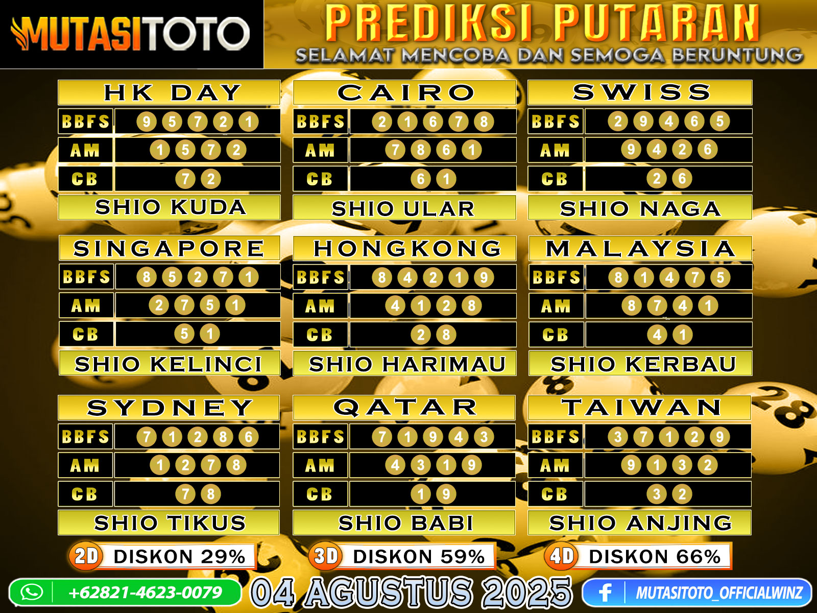 PREDIKSI ANGKA TOGEL “MutasiToto” 04 AGUSTUS 2025