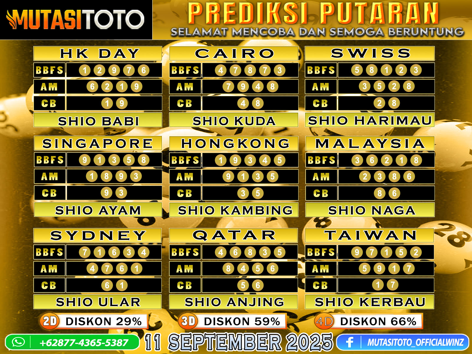 PREDIKSI ANGKA TOGEL “MutasiToto” 11 SEPTEMBER 2025