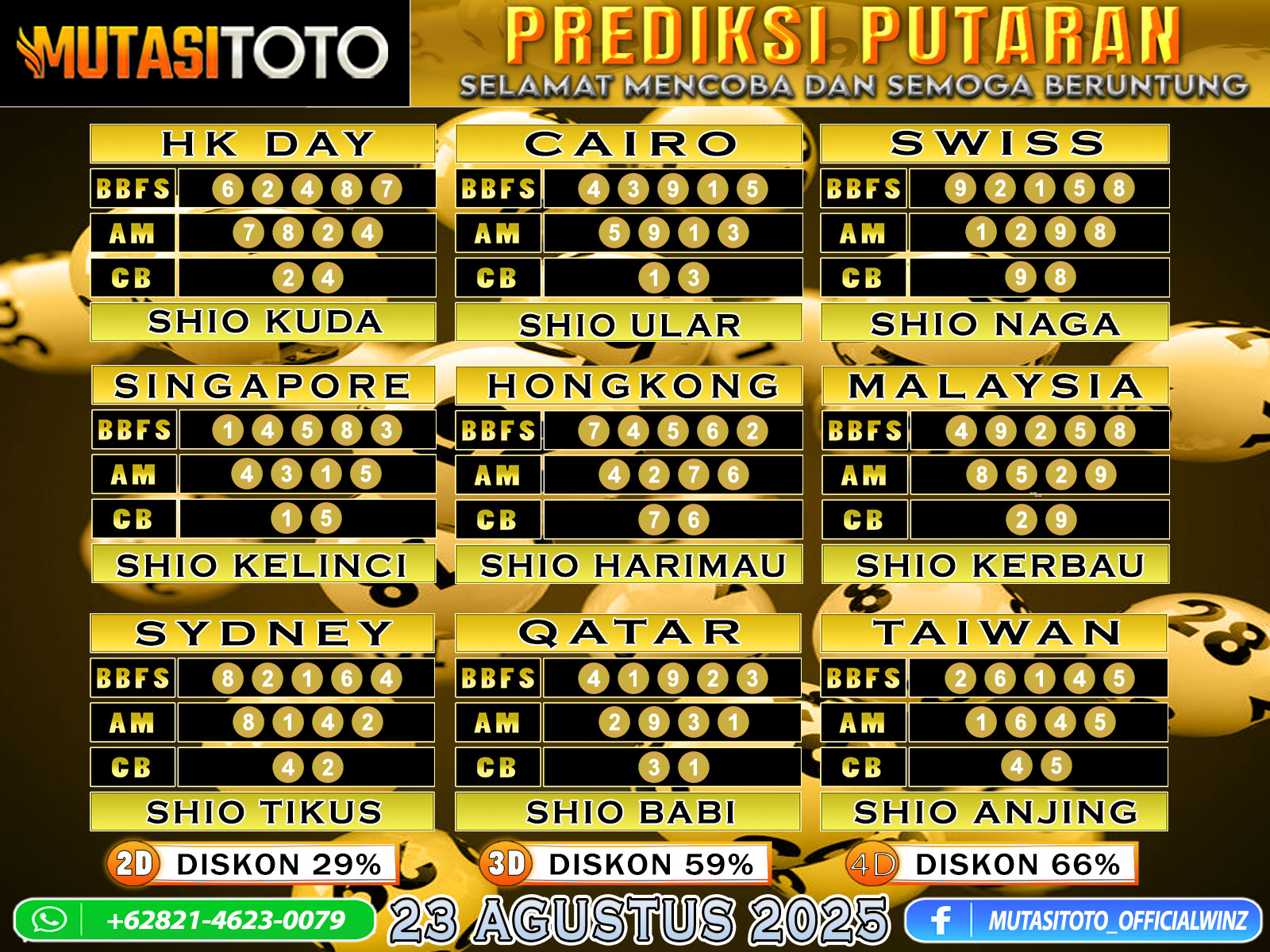 PREDIKSI ANGKA TOGEL “MutasiToto” 23 AGUSTUS 2025
