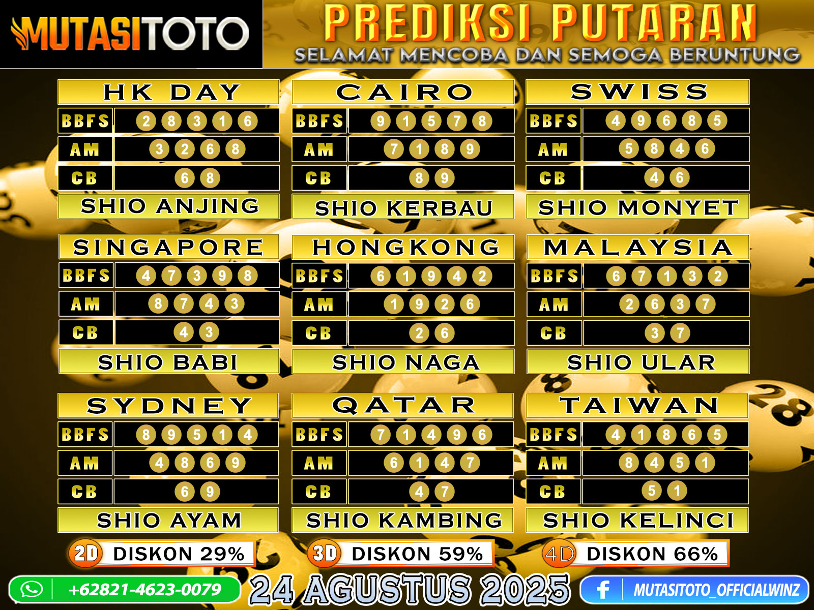 PREDIKSI ANGKA TOGEL “MutasiToto” 24 AGUSTUS 2025