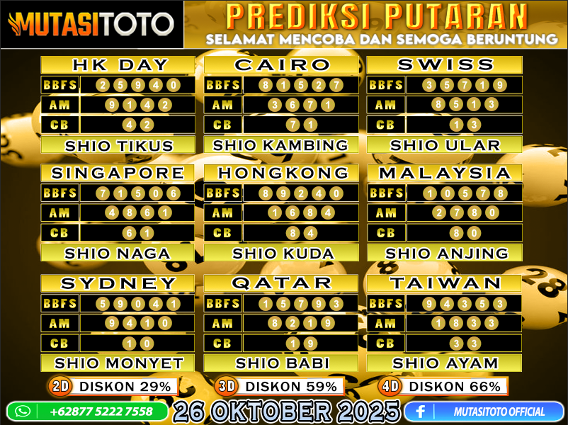 PREDIKSI ANGKA TOGEL “MutasiToto” 26 OKTOBER 2025