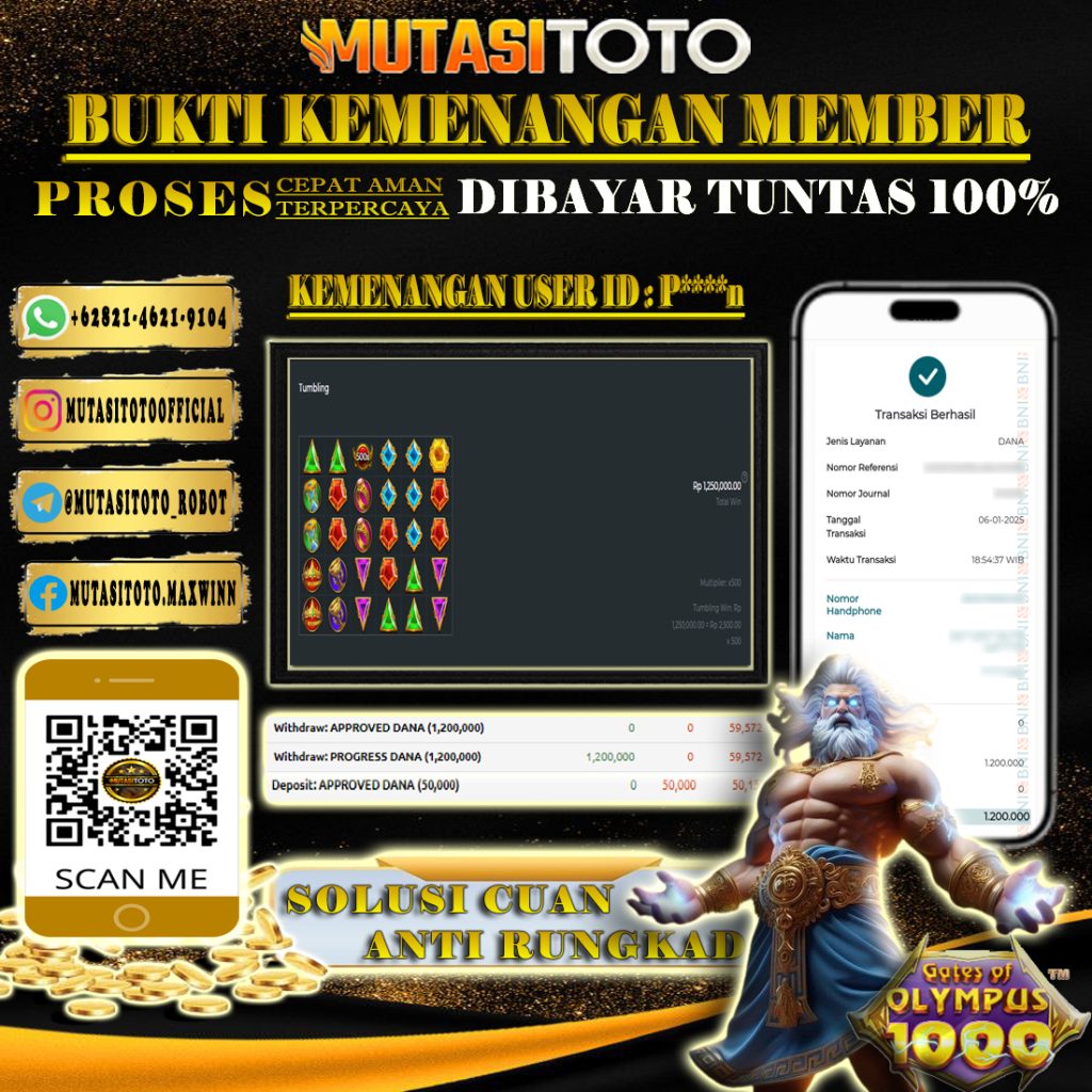 Selamat kepada member kami atas kemenangan besar nya bersama “MutasiToto”