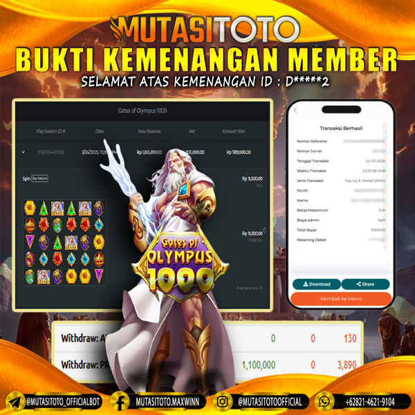Selamat kepada member kami atas kemenangan besar nya bersama “MutasiToto”