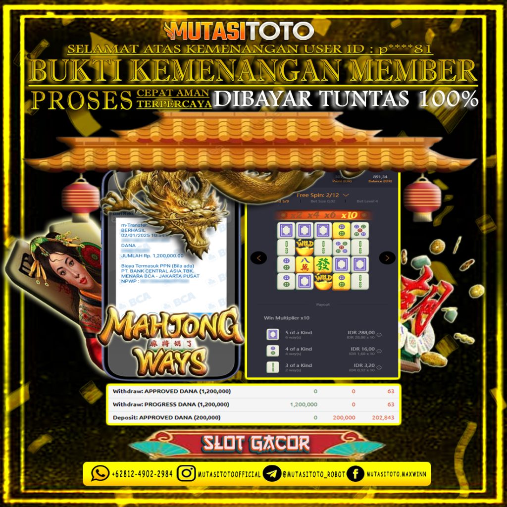 Selamat kepada member kami atas kemenangan besar nya bersama “MutasiToto”