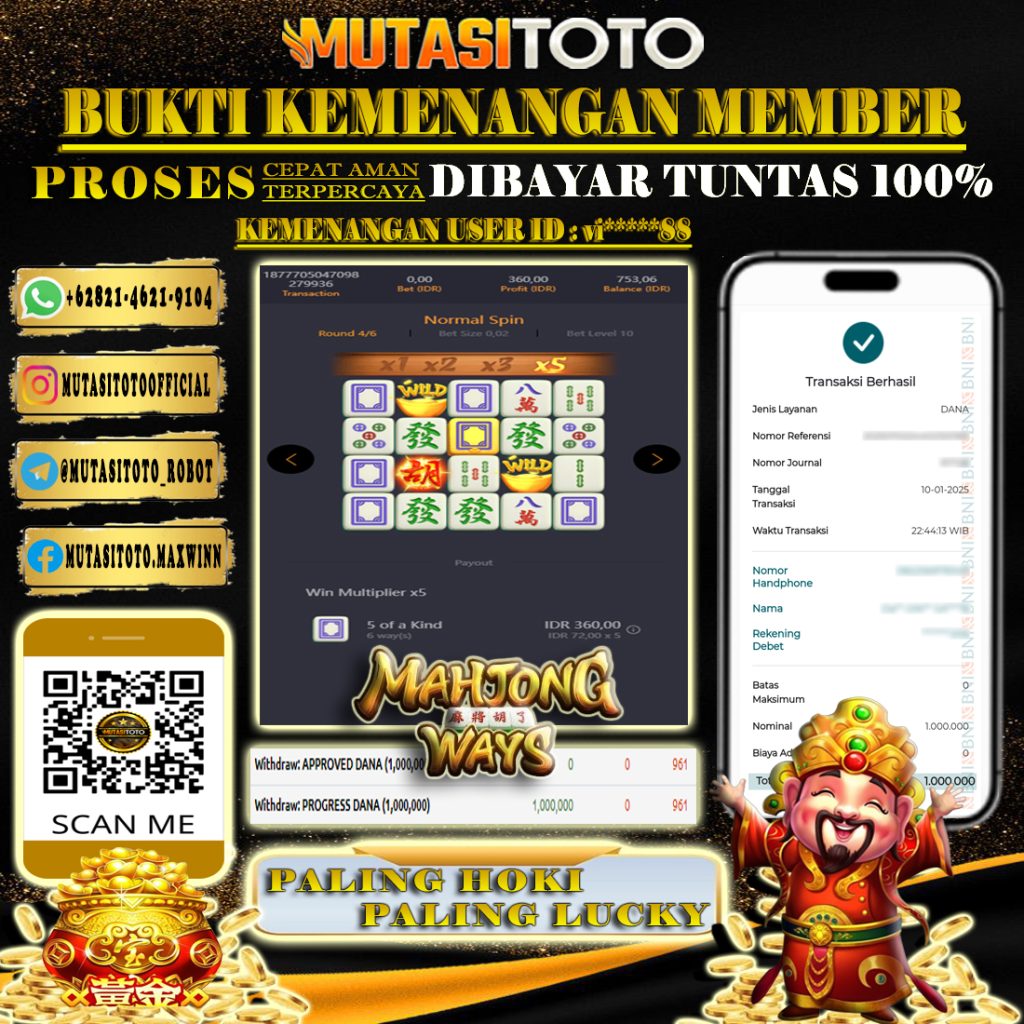 Selamat kepada member kami atas kemenangan besar nya bersama “MutasiToto”