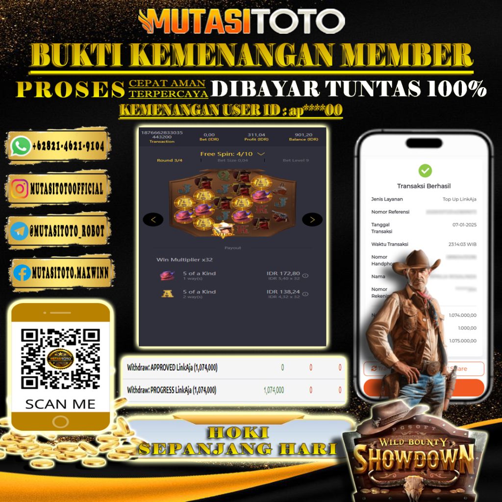 Selamat kepada member kami atas kemenangan besar nya bersama “MutasiToto”